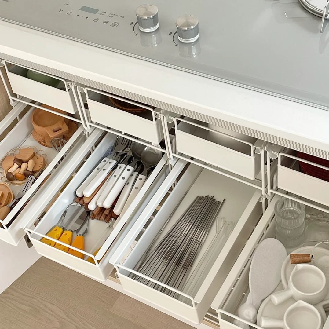 多層儲物抽拉式置物架可以無限重疊!!! 疊兩層分類🉑️放了常用的刀叉勺子筷子 更加方便你安排收納 ——— 🌟可抽卡設計、置物更方便 🌟空間完美利用 🌟導軌滑道、抽拉順暢 🌟收納大容量 🌟免安裝 打開即用 🌟承重穩 🌟多場合適用 🌟防水、防潮 💓【PRODUCTINFORMATION】 【顏色】白色、黑色 【材質】碳鋼 【尺寸】34cm*20cm*16cm
