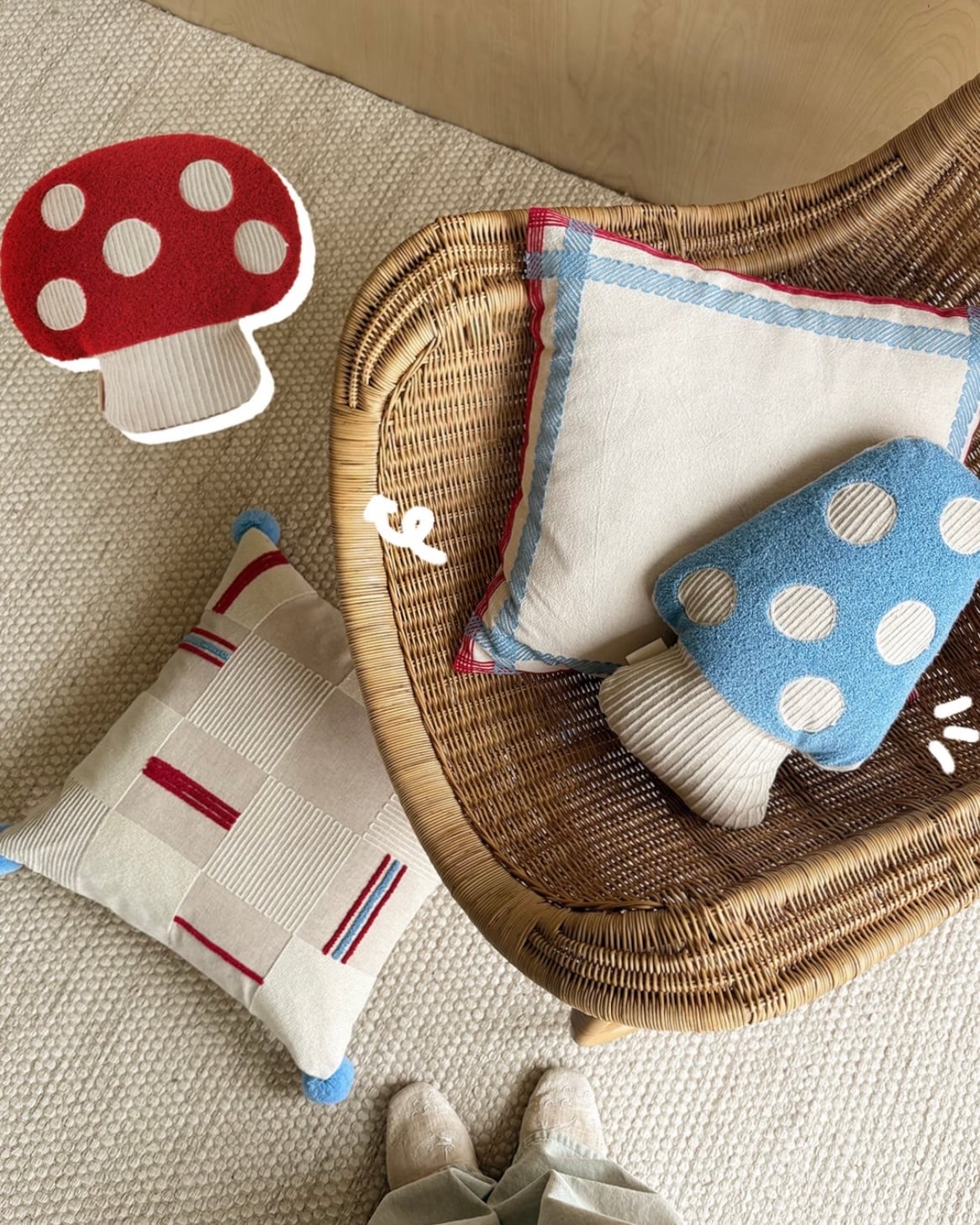 In Cream Mall 這次不想只賣你一個抱枕,我們想送你一張通往森林秘境的門票。這兩朵 「多巴胺蘑菇」,就像是剛從愛麗絲夢遊仙境裡偷溜出來的小精靈,正準備在你的藤椅、沙發上安家落戶。🌲