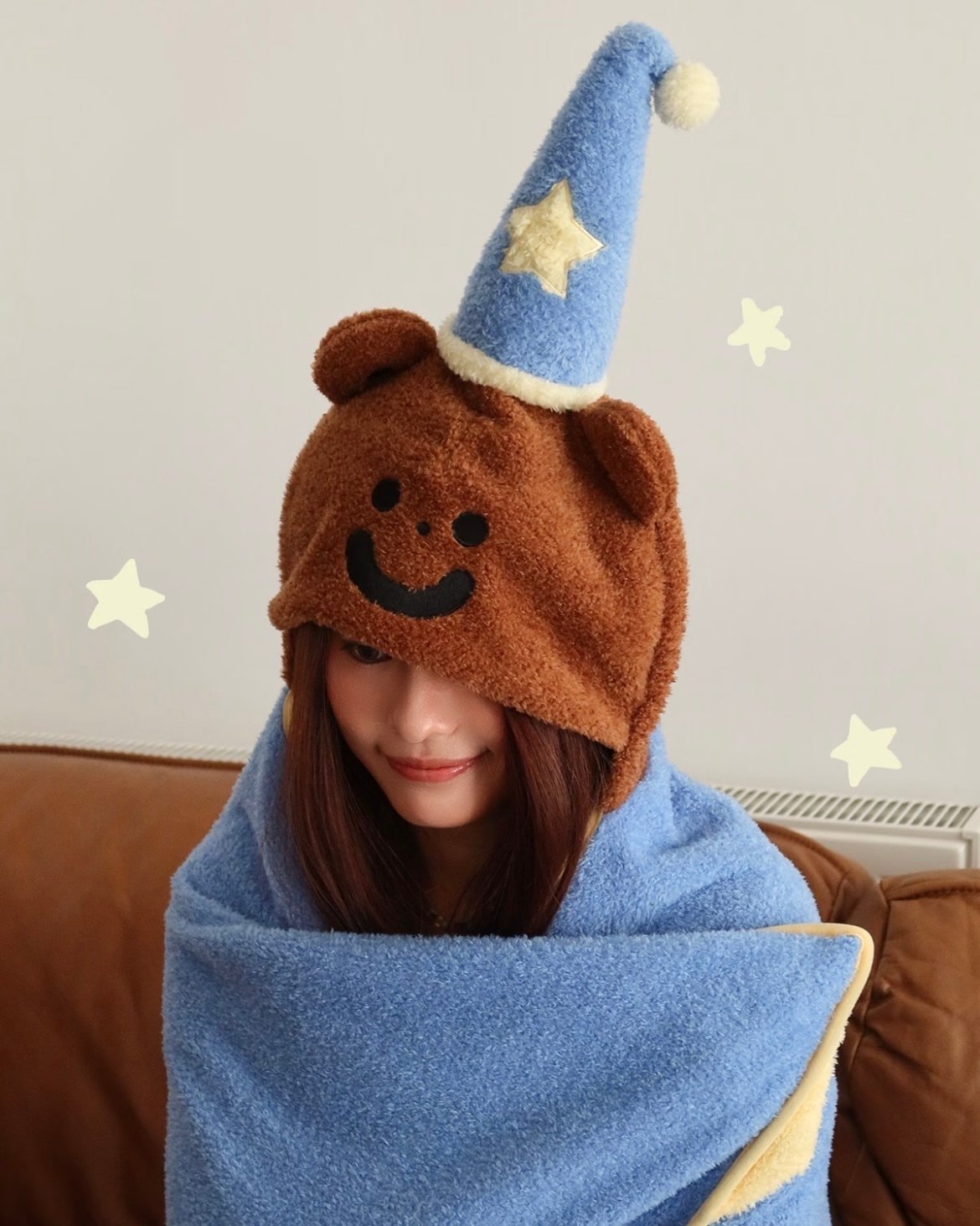 小熊連帽毛毯披肩