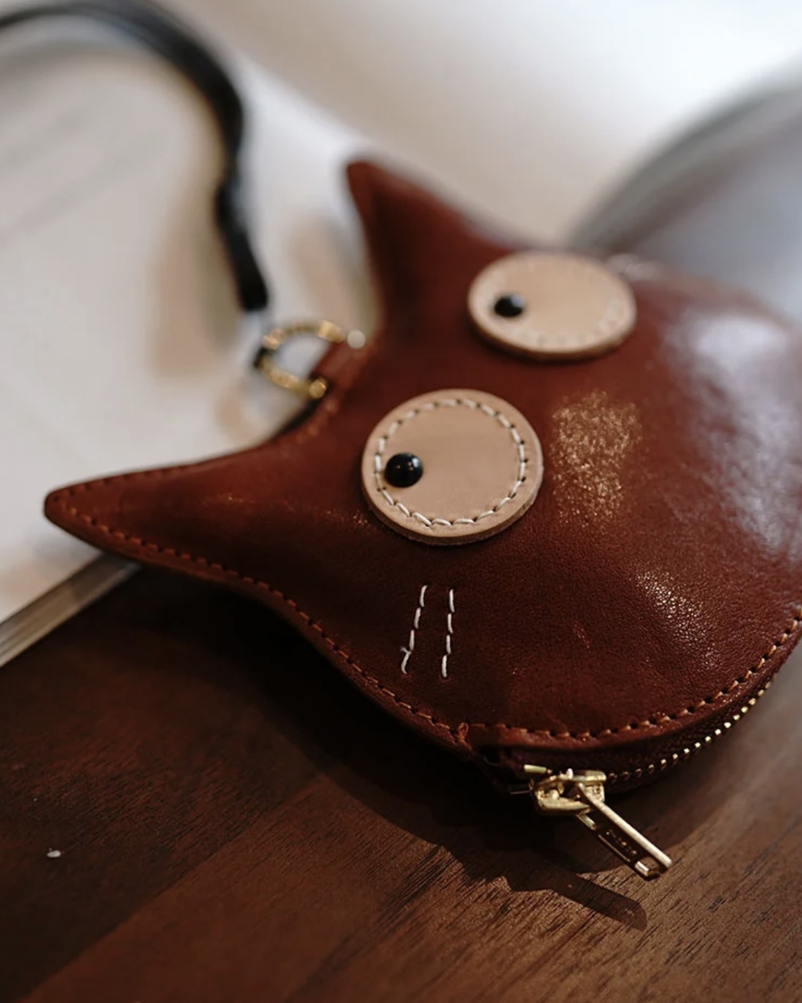 植鞣牛皮貓咪掛脖零錢包