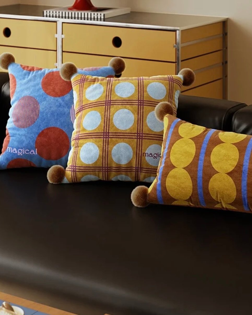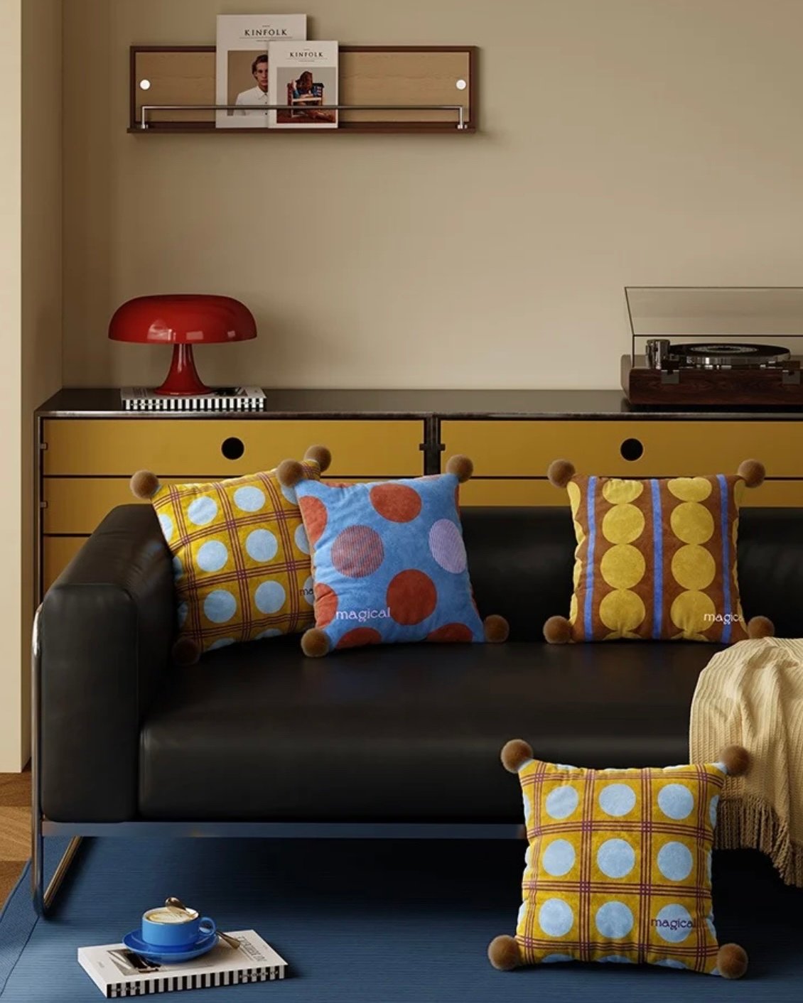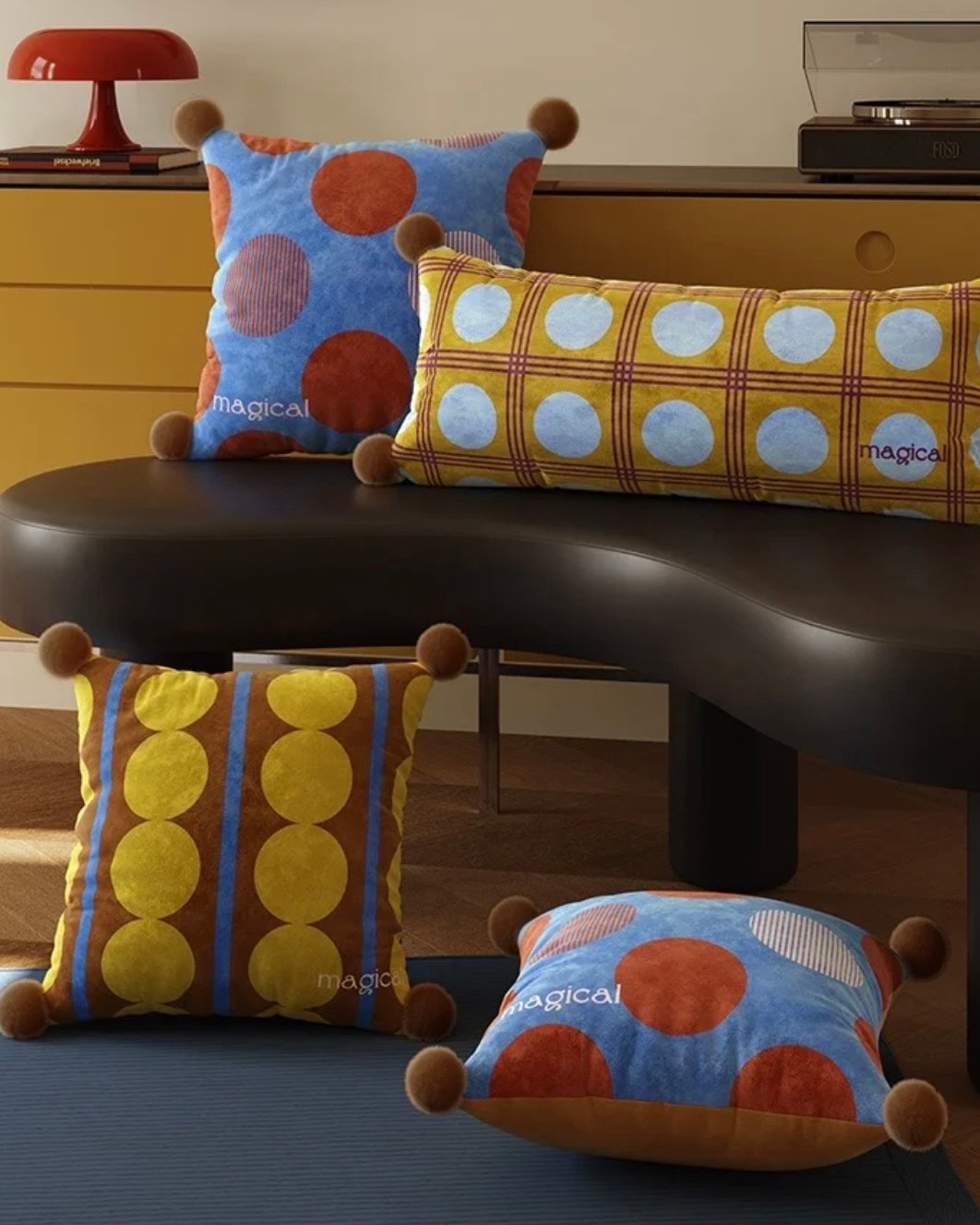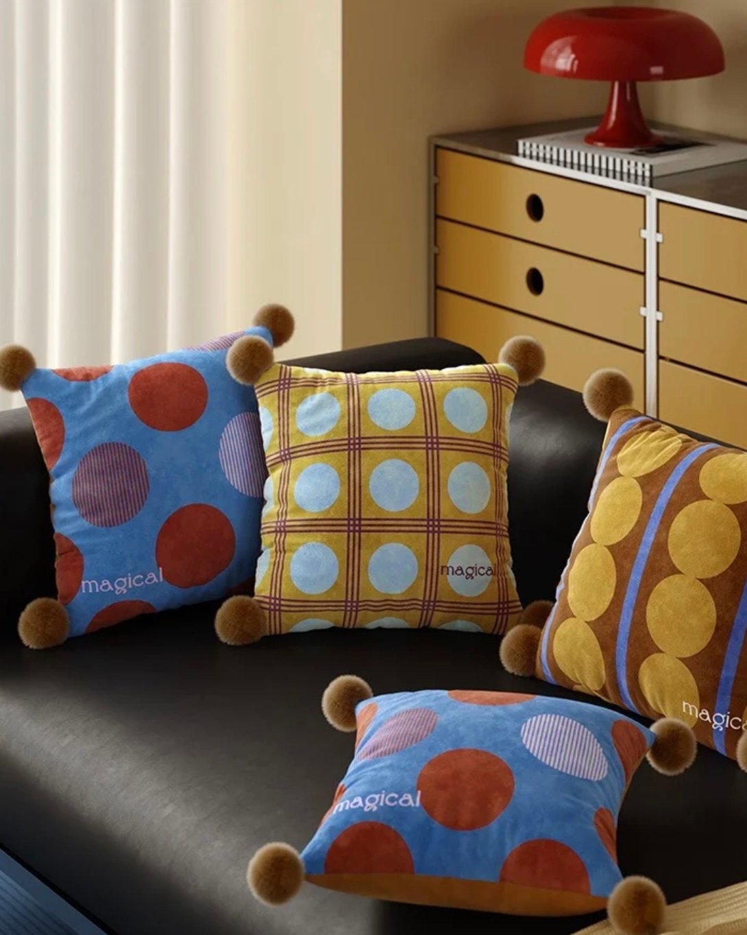 幾何波點的趣味排列,搭上活力撞色,一放即成為客廳C位。把後現代的藝術感搬進家,讓日常瞬間變得更有「多巴胺」的愉悅與能量。 你會愛上的亮點 - 波爾卡圓×撞色美學:趣味與質感兼具,空間一秒有亮點 - 低飽和高質感:復古味剛剛好,耐看不浮誇 - 細膩短毛絨:柔軟親膚,靠躺抱都舒適 - 可拆洗枕套:好打理,常用常新 - 45×45 cm萬用尺寸:沙發靠墊、方形抱枕、腰枕都合適 規格資訊 - 材質:細膩短毛絨 - 尺寸:45 × 45 cm - 形式:枕套可拆洗(內芯依頁面說明為準) 使用情境 - 客廳沙發點睛、臥室床頭疊搭、窗邊閱讀角、門店陳列布置 保養建議 - 建議冷水溫和手洗或套洗衣袋輕柔機洗,陰乾 - 請避免漂白與高溫烘乾,遠離尖銳物 用一顆抱枕,為空間加一抹有趣與高級。和我們一起,發掘美好生活。