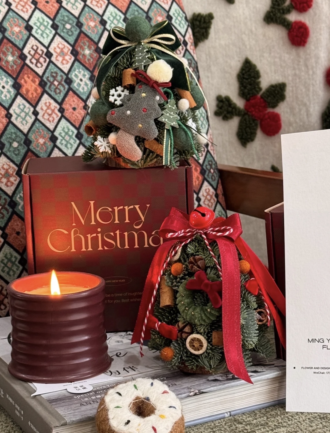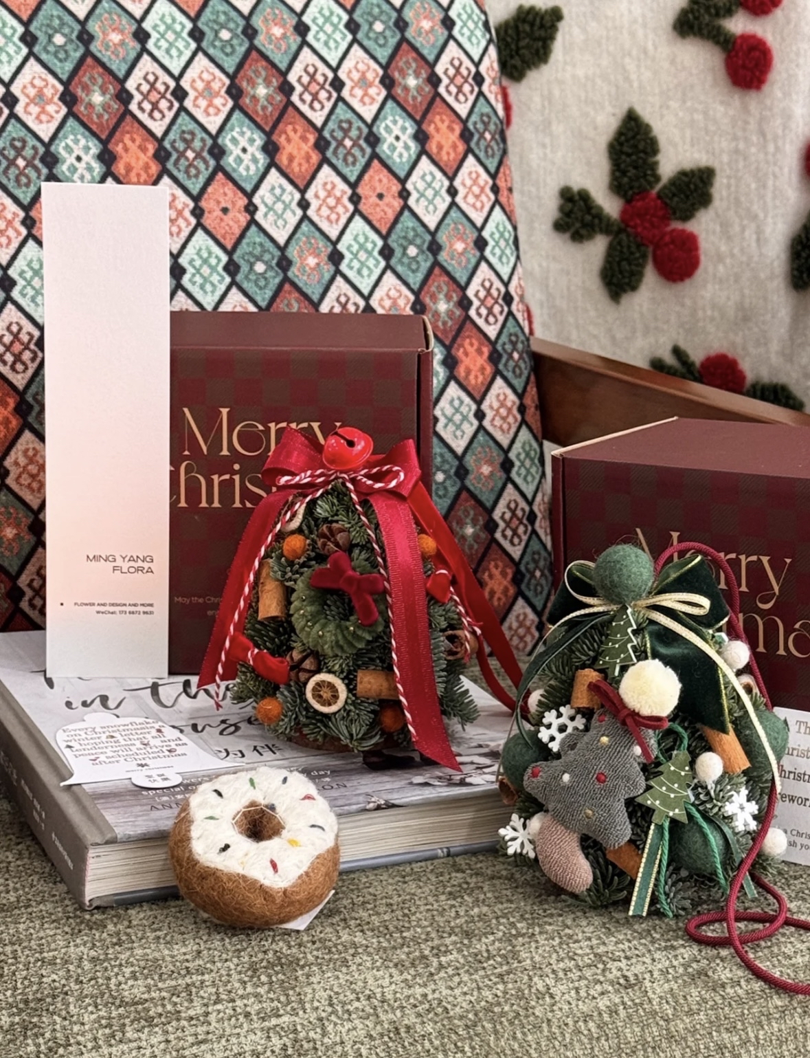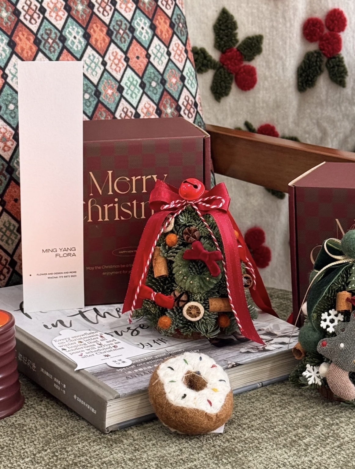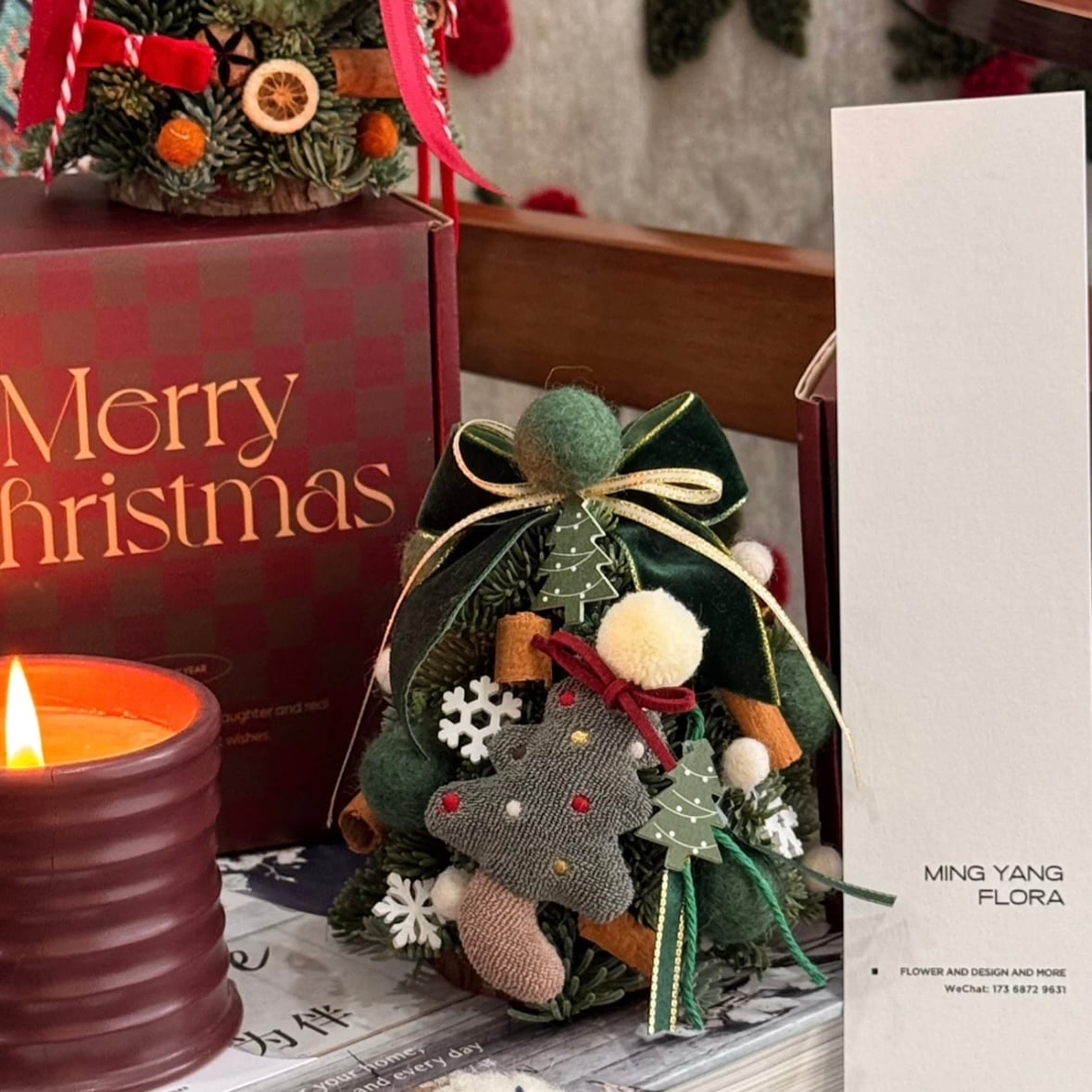 迷你聖誕樹紅色和綠色款 可以做車掛也可以放在辦公桌、床頭、寫字桌任何你想放的位置(3 迷你聖誕樹的松是新鮮的諾貝松製作而成,後期懸掛自然風乾即可,可以懸掛2個月左右。 包含:成品迷你聖誕數一個,亞克力禮盒一個迷你聖誕樹尺寸:高度約13釐米,寬度約10釐米 盒子尺寸:高度10釐米,寬度15釐米,長度15釐米