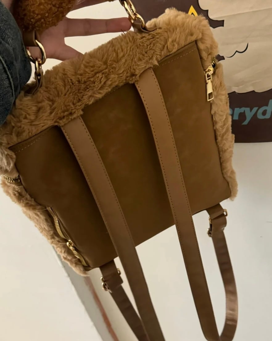 把軟呼呼的麵包絨和小熊萌點一起背上肩,從穿搭到心情都暖起來!通勤、上學、出遊、約會,走到哪裡都是焦點。 你會愛上的亮點 - 軟糯毛絨手感:秋冬專屬的蓬鬆治癒,抱著背著都想摸 - 麵包小熊造型:圓潤可愛、辨識度高,拍照直接出片 - 輕盈好背:雙肩背帶可調,久背也舒適 - 實用容量:手機、錢包、鑰匙、唇膏、紙巾等日常小物剛剛好 - 細節到位:內裡分隔與順手開合(以實物為準),拿取更俐落 - 穿搭百搭:毛衣、大衣、羽絨都能完美點睛 規格資訊 - 款式:毛絨雙肩包(麵包小熊造型) - 材質:毛絨(聚酯纖維)+內裡+五金(以實物為準) - 背帶:雙肩可調節 清潔保養 - 建議局部濕布輕拭;如需清洗請套洗衣袋冷水柔洗,陰乾 - 順毛方向輕梳理,維持蓬鬆手感 - 避免與粗糙表面長時間摩擦,遠離火源與高溫 背上小熊,整天都甜甜的。和我們一起,發掘美好生活。