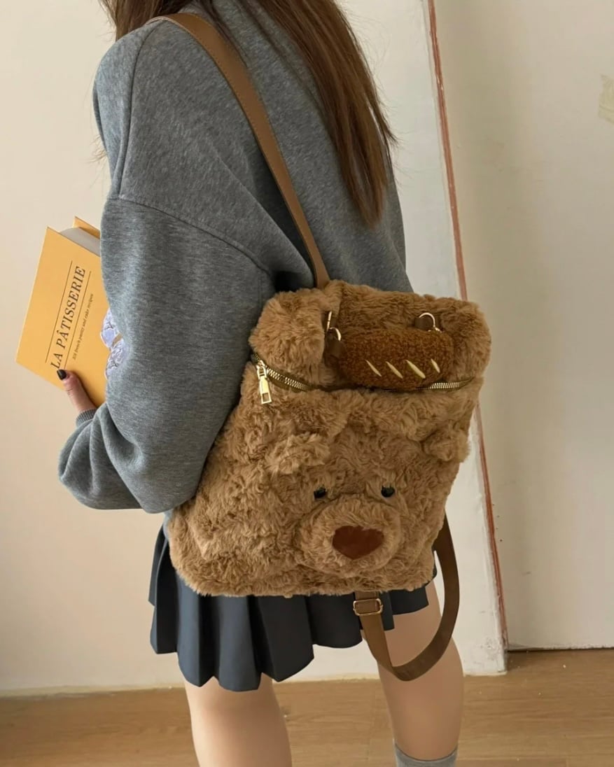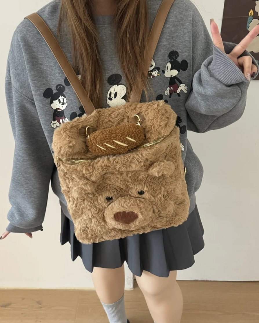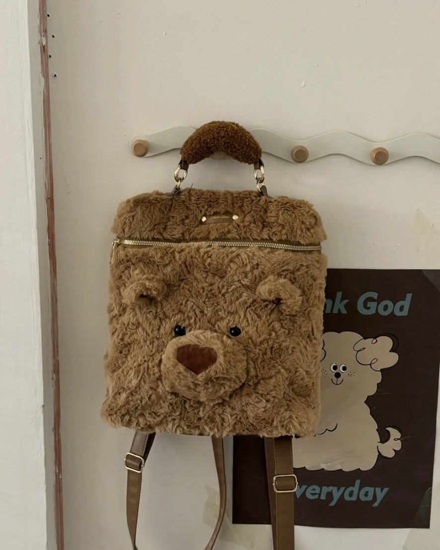 秋冬毛絨小熊雙肩包