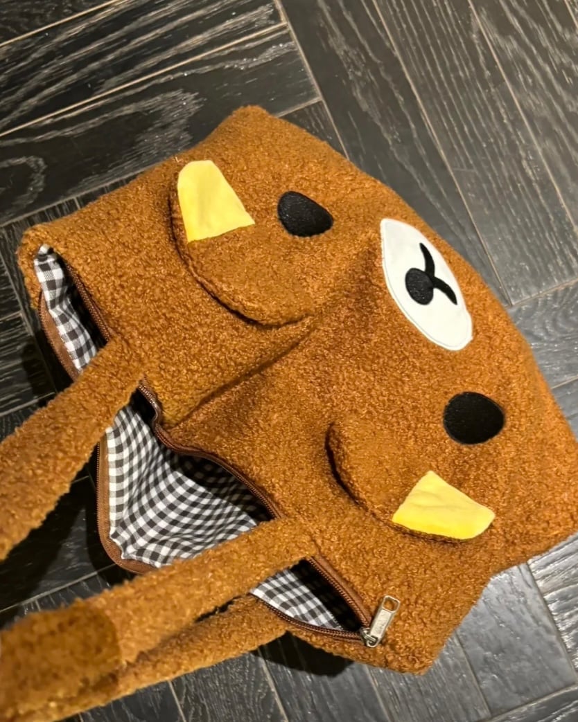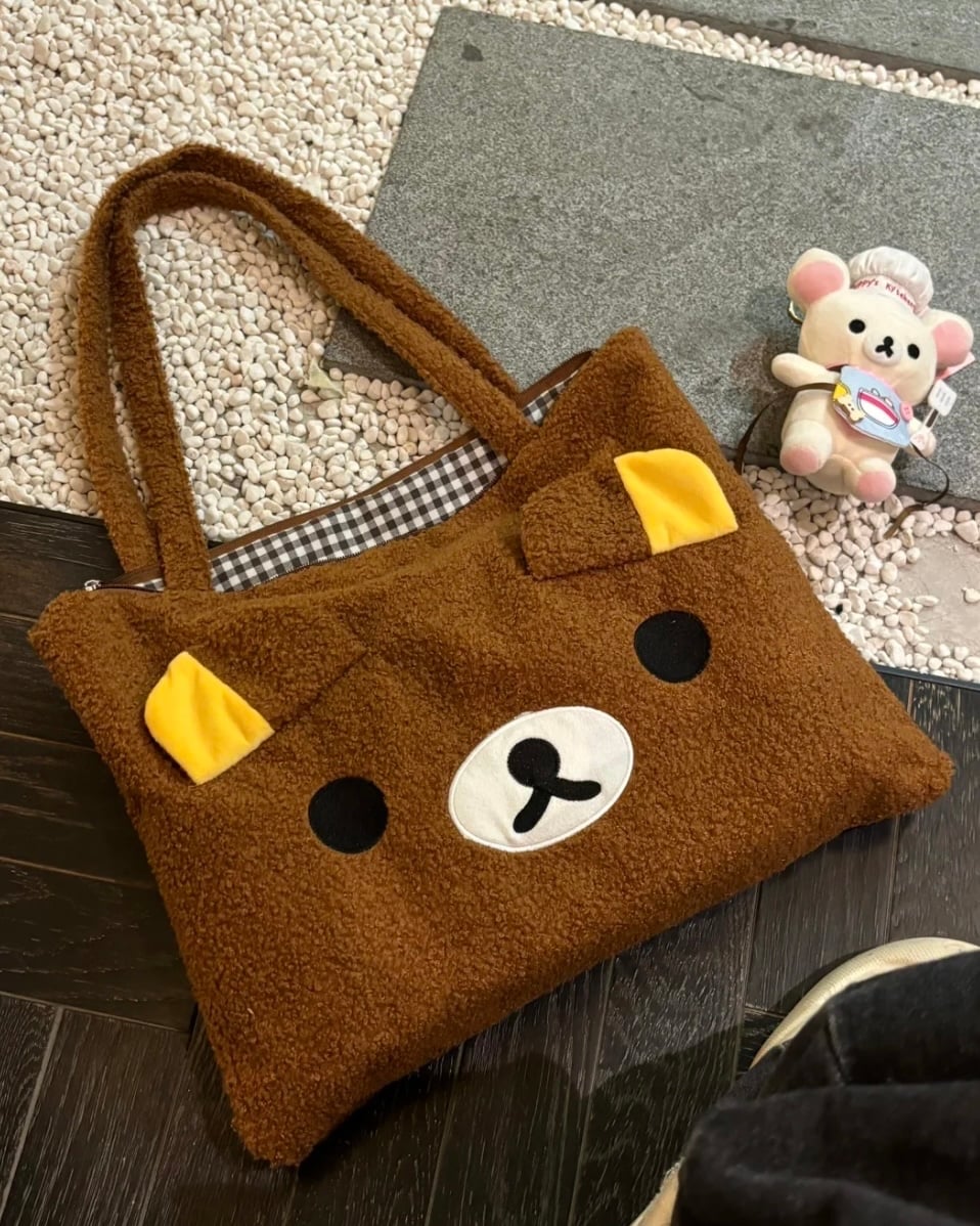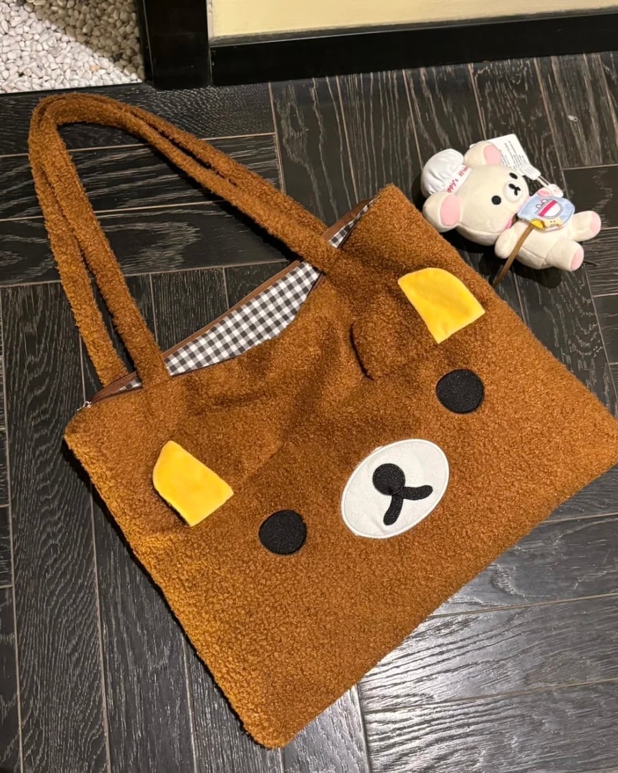 秋冬羊羔毛輕鬆熊刺繡托特包