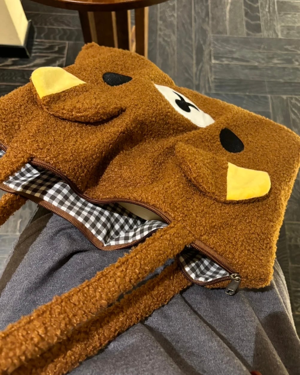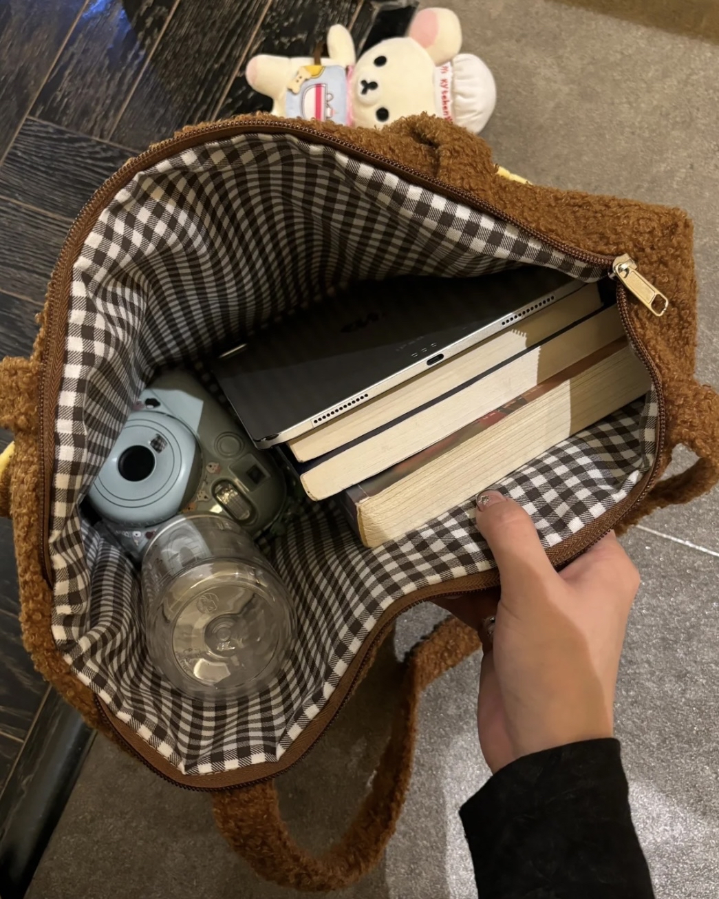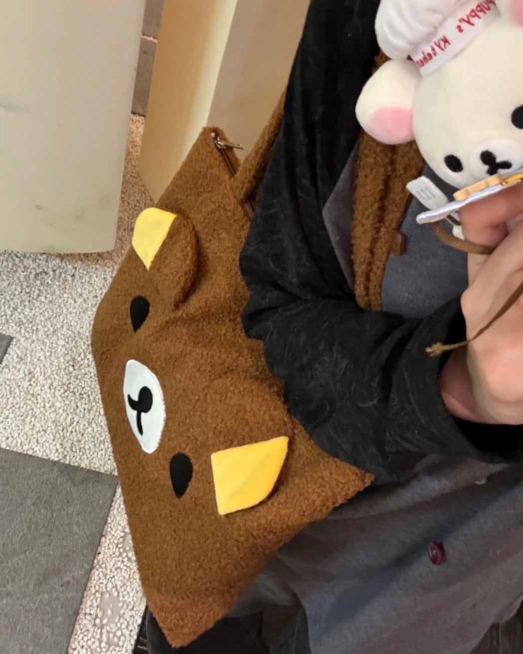 秋冬羊羔毛輕鬆熊刺繡托特包