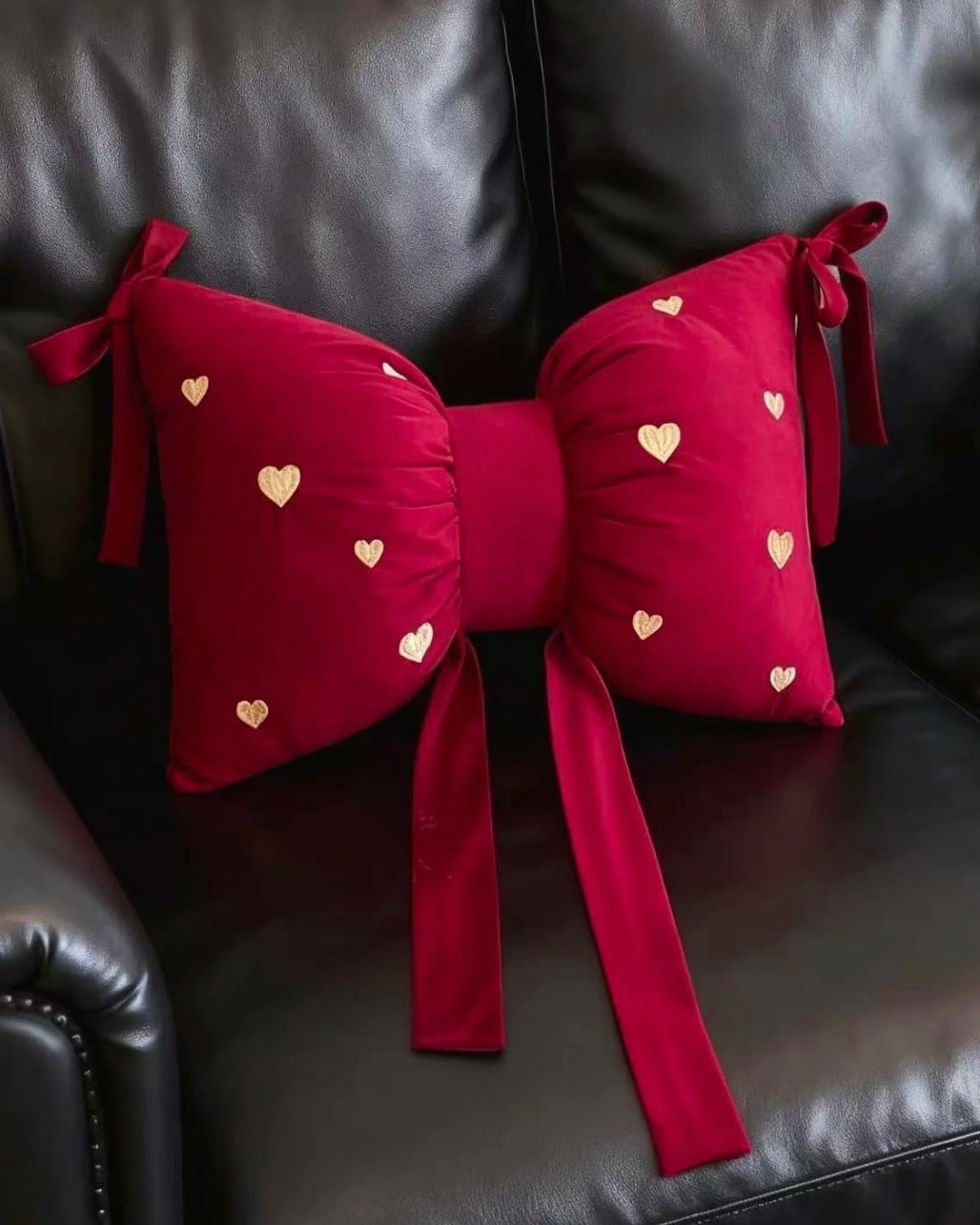 一顆大蝴蝶結放上沙發,儀式感直接拉滿。細緻荷蘭絨帶著微微光澤,柔軟親膚又保暖;金色愛心刺繡點綴,甜而不膩,抱著、靠著都舒服。