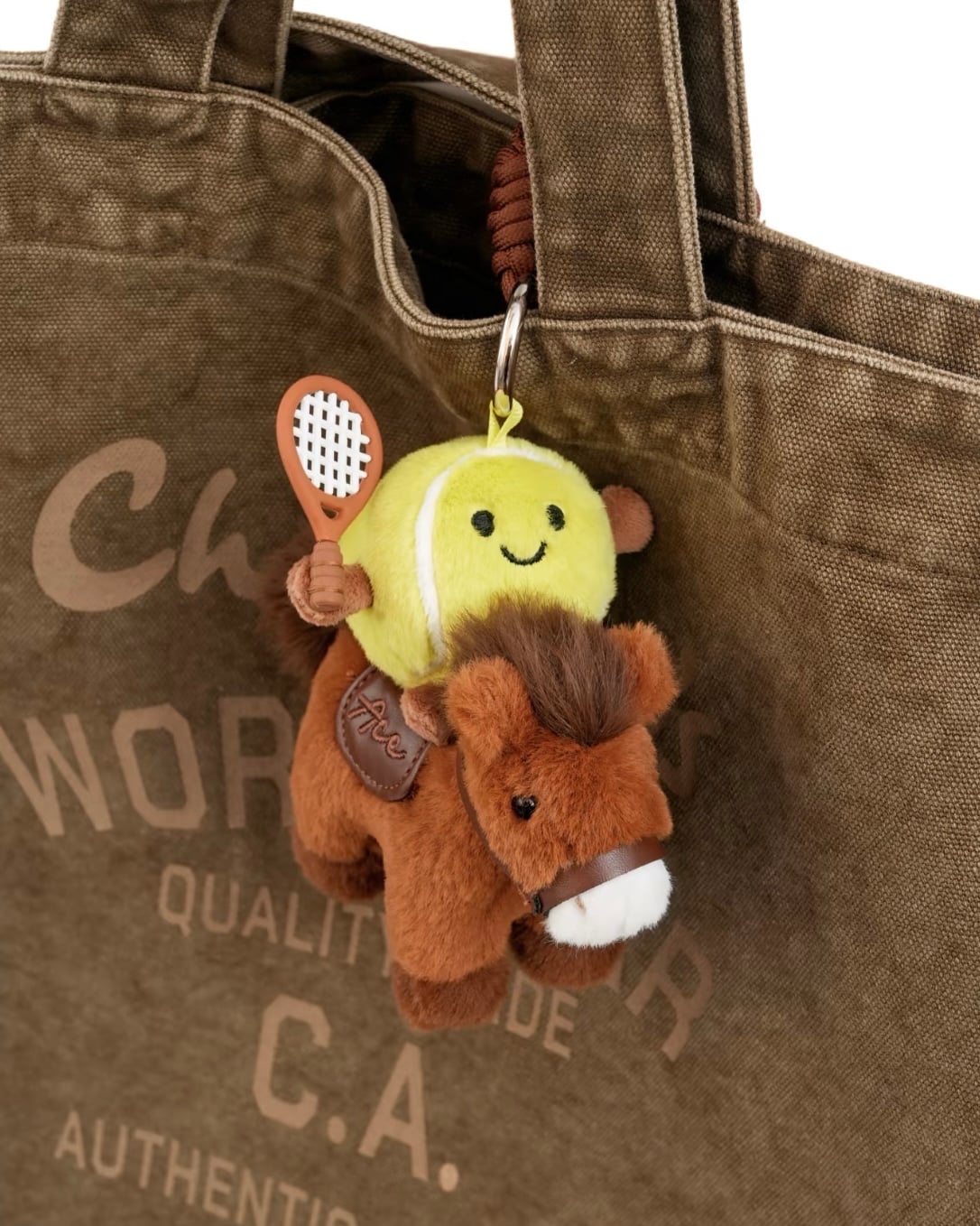 網球公仔手握球拍,騎在小馬上,超可愛也超有寓意!把網球×小馬融合成「馬上漲球」的開運小物,陪你從練習到比賽,每一次揮拍都更有底氣與儀式感。 你會愛上的亮點 - 寓意滿分:馬上漲球,為目標與熱愛加持 - 小眾高顏值:網球公仔×小馬造型,一眼記住不撞款 - 輕巧好掛:13cm剛剛好,包包、球拍套、鑰匙圈都能掛 - 觸感軟糯:聚酯纖維+棉填充,手感舒服更療癒 - 送禮不失手:送隊友、教練、網球同好,都超懂你 規格資訊 - 尺寸:約高 13 cm - 材質:聚酯纖維+棉 - 內容:掛件 ×1(顏色/細節以實物為準) 使用情境 - 掛在球拍套、球袋、日常包包、車內後視鏡 - 比賽應援、訓練打卡、交換禮物 保養貼士 - 建議局部濕布輕拭,陰乾即可 - 避免拉扯小配件與靠近火源;幼童請在成人陪同下使用 把堅持與可愛一起帶走,馬上漲球不只是口號。和我們一起,發掘美好生活。