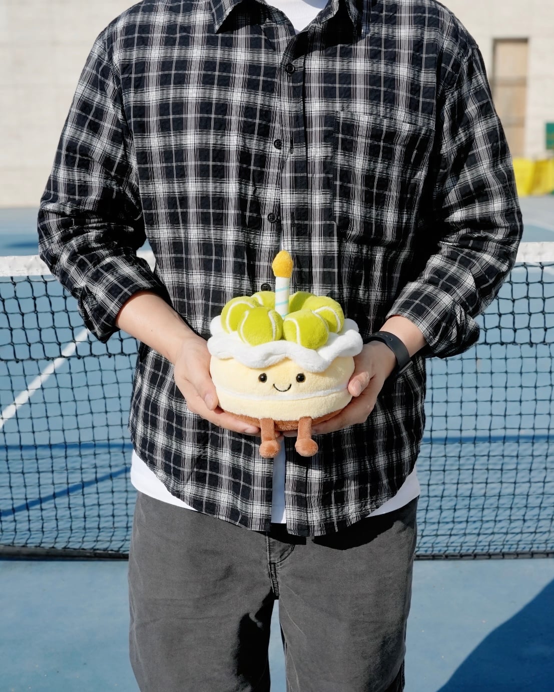 原來把網球當蛋糕 topping 這麼美妙!一眼甜蜜、一抱療癒,捧在手裡是紀念,抱在懷裡是安慰。生日、比賽、紀念日,給自己或網球迷好友一份軟綿的儀式感。 你會愛上的亮點 - 網球×蛋糕造型:創意滿分,拍照直接出片 - 軟糯治癒手感:毛絨細膩,抱著就不想放手 - 18cm剛剛好:桌面擺件、床頭陪伴都合適 - 送禮零失手:生日禮物、比賽應援、派對佈置都加分 - 小眾高顏值:一眼識別,甜而不膩的可愛 規格資訊 - 尺寸:約高 18 cm - 材質:聚酯纖維+棉填充 - 內容:網球蛋糕毛絨玩偶 ×1(顏色/細節以實物為準) - 溫馨提醒:創意玩偶,非食品,請勿入口 使用情境 - 生日蛋糕旁的甜蜜擺件 - 網球賽後的紀念與打卡 - 書桌/床頭/展示層療癒陪伴 清潔保養 - 建議局部濕布輕拭;必要時套洗衣袋冷水柔洗,陰乾 - 請勿漂白、勿高溫烘乾;避免長時間曝曬與強力拉扯 把甜甜的可愛帶回家,為每一次熱愛與慶祝加上一顆軟綿的「甜度」。和我們一起,發掘美好生活。