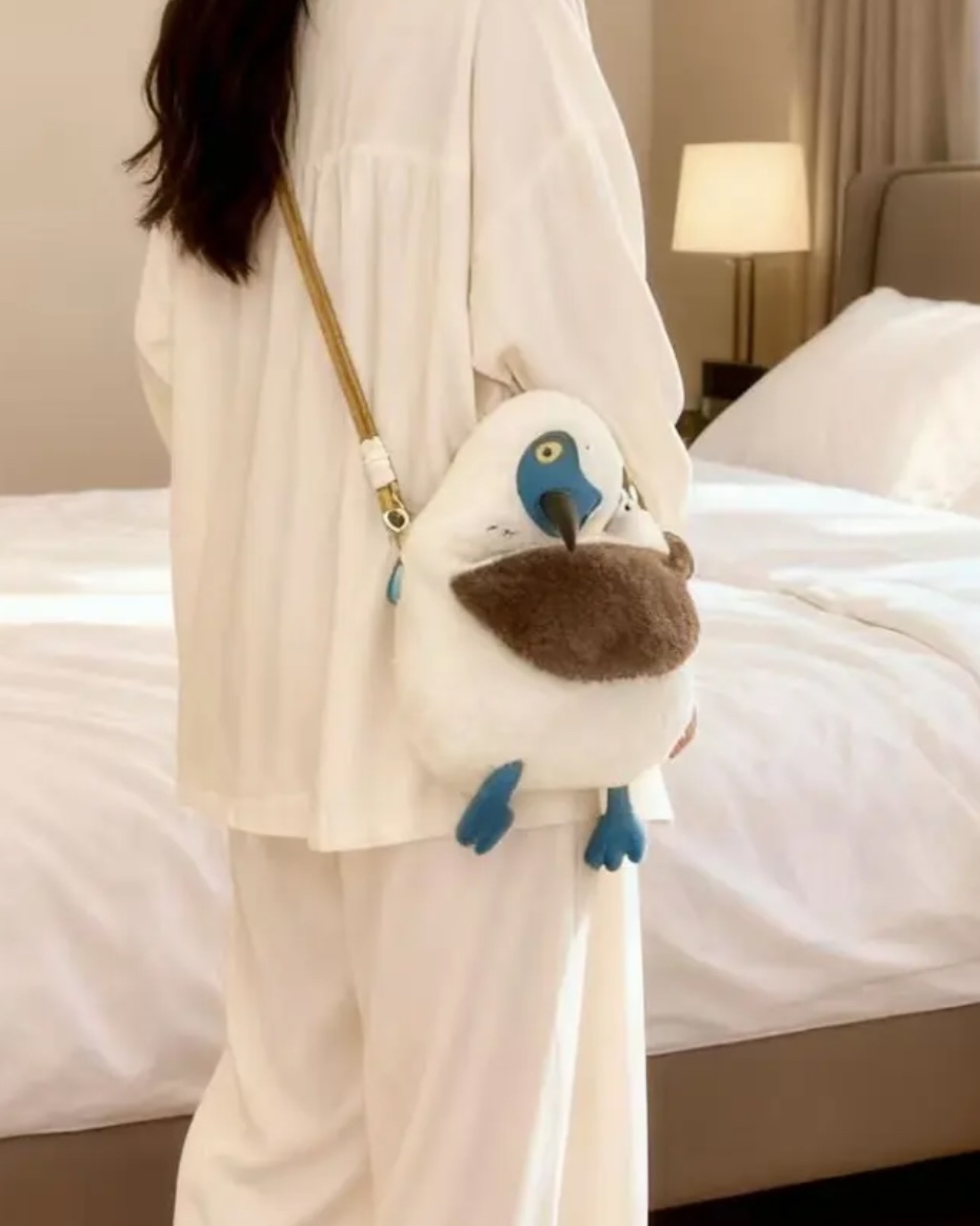 把海風與萌度一起背上身!以藍腳鰹鳥為靈感的毛絨包,軟糯親膚、辨識度滿分,秋冬穿搭一秒有記憶點。通勤或出遊,都能輕鬆成為人群焦點。 你會愛上的亮點 - 藍腳鰹鳥造型:藍色小腳點睛,高回頭率的可愛存在 - 軟綿毛絨手感:視覺與觸感同步升溫,秋冬更療癒 - 斜挎/單肩兩用:解放雙手,通勤逛街都好背 - 輕盈卻能裝:手機、短夾、鑰匙、紙巾、唇膏剛剛好 - 細節到位:順手開合、內裡分隔(以實物為準),拿取俐落 - 拍照打卡神器:可愛上鏡,怎麼拍都好看 規格資訊 - 款式:斜挎/單肩毛絨包 - 材質:毛絨(聚酯纖維)+內裡+五金 - 尺寸/顏色/肩帶調節:以商品頁與實物為準 使用情境 - 上班通勤輕裝出門 - 週末市集、咖啡約會、旅行逛街 - 秋冬毛衣大衣穿搭點睛 清潔保養 - 建議局部濕布輕拭;或套洗衣袋冷水柔洗,陰乾 - 順毛方向輕梳理維持蓬鬆;避免與粗糙面長摩擦 - 收納置於乾燥陰涼處,避免重壓與高溫 把藍腳小萌鳥背上肩,讓好心情一路同行。和我們一起,發掘美好生活。