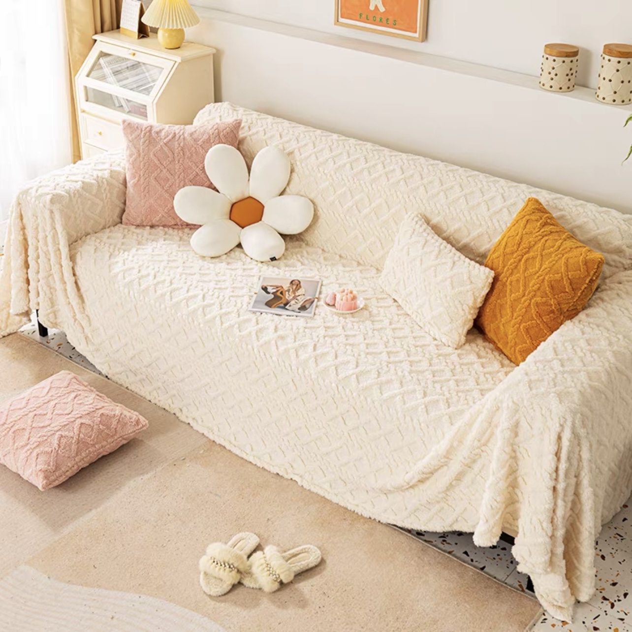 In Cream 多功能四季通用萬能沙發罩全蓋布 ✔️ 精密舒棉提花絨 高克重毛絨與立體提花的驚喜結合 保暖手感舒適,久用不掉毛! ✔️一巾多用不掉毛【⚠️雙面可用!】 一片式鋪蓋 整體鋪設,比普通沙發墊易打理一巾多用 實用性更強,滿足多種需求! ✔️活性印染不褪色 輕鬆機洗水洗不掉毛 色牢度高顏色清晰久洗如新! ✔️支持機洗 清潔方便 健康潔淨,機洗不褪色! ✔️ 多功能設計 日常辦公、居家生活、差旅外出,時刻體貼你的溫度感知,🉑️充當午睡毯、被單/床單、車用毯、披肩