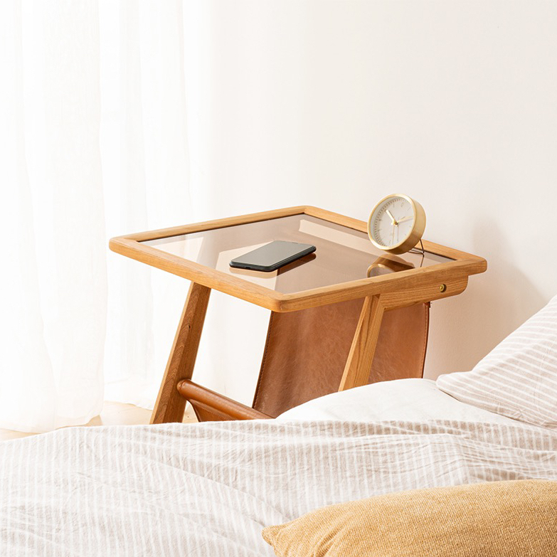 Pocket Side Table /兜物邊幾 零零碎碎小物件 都是散落的美好 兜物邊幾 兜住生活的小幸運 邊幾是生活中觸手可得的便利 它可以是休閒娛樂時的零食台子、飲品台子 也可以是陪伴衣食住行的餐邊櫃、床頭櫃 或是工作學習時的書桌、電腦桌 小巧的體積設計,可以隨時將其安放左右 閒適的外形、隨性的兜袋,為生活增添一份逸趣 #用料與結構: 選用北美FAS級櫻桃木,紋理清晰,質感細膩柔和 支架採用上窄下寬的Z型設計,兼顧美觀與穩定 兜袋選用超纖皮,柔韌易打理! 定制超纖皮,柔軟質地,觸感細膩 搭配黃銅五金,提升整體品質感~ 兩款玻璃台面可倛選擇 A款:茶色玻璃台面 B款:長虹玻璃台面