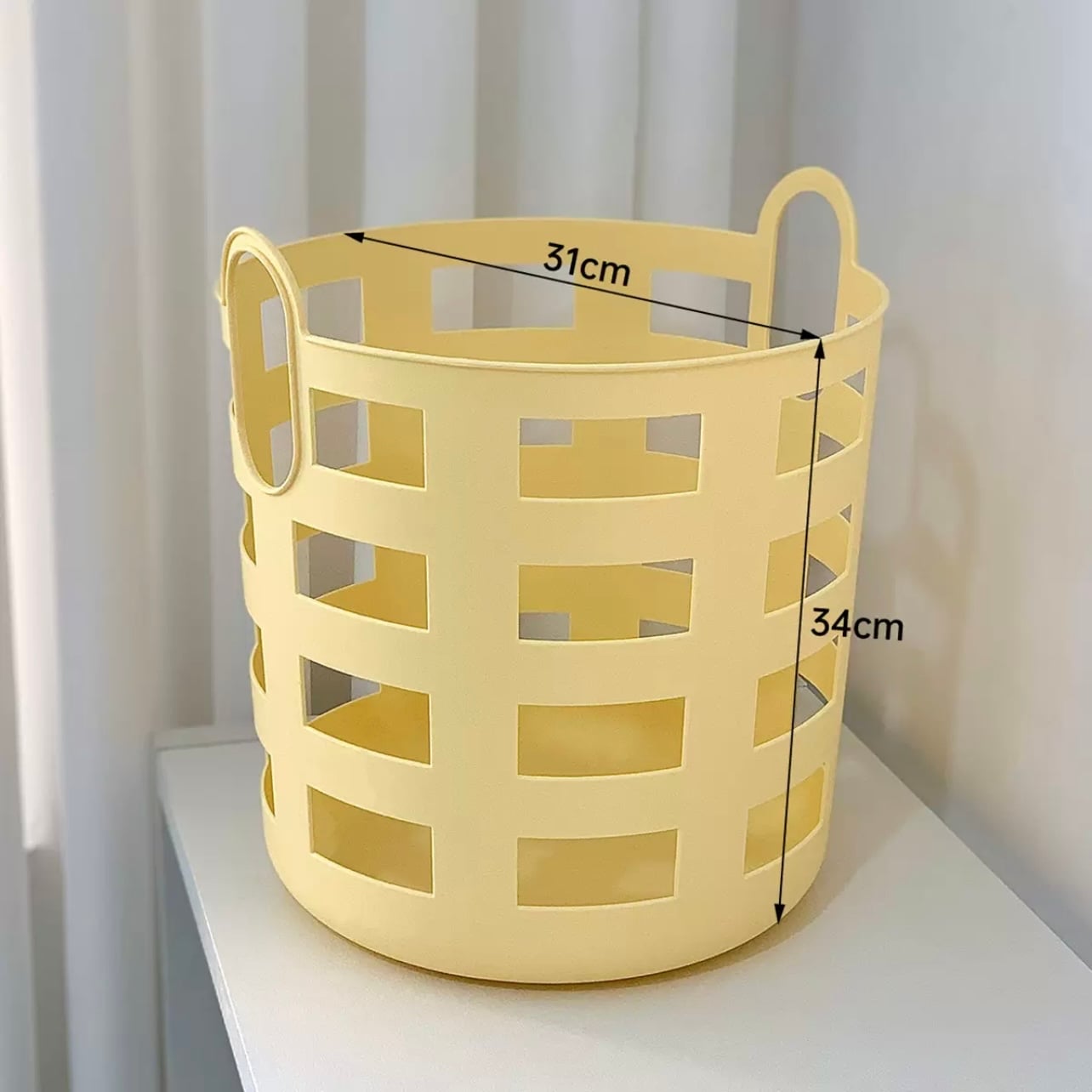 奶黃色鏤空收納筐 多功能收納 兩側提手設計 方便移動 輕鬆收納 三種尺寸 滿足不同需求 材質:塑料 尺寸:大號長31高34CM 中號長23.5高25.6CM 小號長18.2高20.3CM (手工測量 存在誤差)