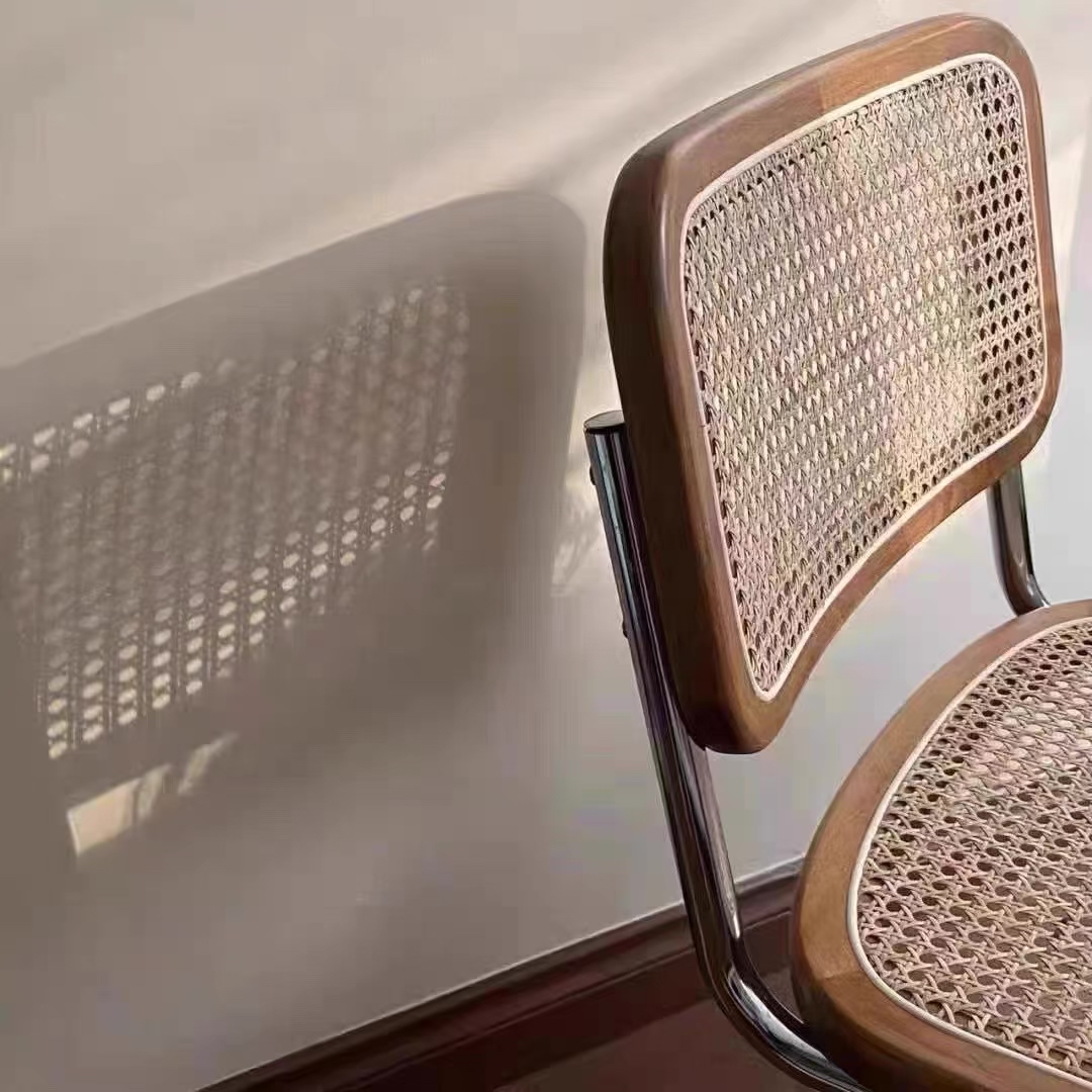 💓【PRODUCTINFORMATION】 【尺寸】54cm長x48cm闊x82cm高 【物料】鋼管椅腳 +印尼進口八角藤編+實木背靠框架(胡桃色)+復古油蠟皮坐墊 【重量】約7kg