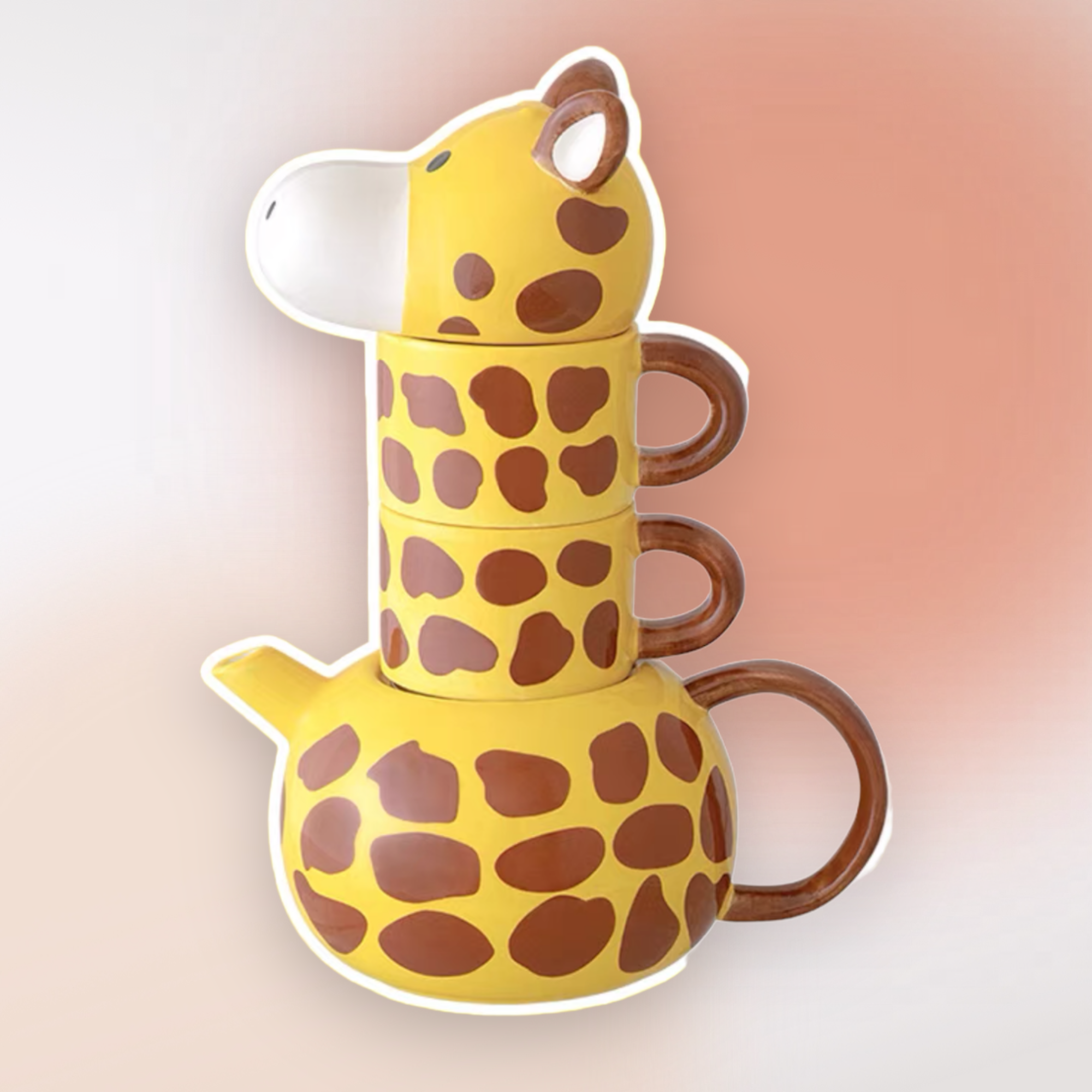 💓【PRODUCTINFORMATION】 【尺寸】約19.8cm長x13.8cm闊x25.5cm高 【顏色】黃咖色 【物料】陶瓷 【重量】約1.5kg ⚠️茶壺容量約500mL茶杯容量約110mL ⚠️ 禮盒尺寸約35.2cm長x25cm闊x15.7cm高