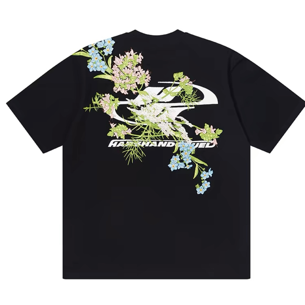 🌸👕✨【in cream centre】Street Floral Embroidered Short Sleeve T-Shirt - Heavy Embroidery Plant Print, Multiple Colors, 100% Cotton✨🌸 For those who like to stay ahead in fashion, our Street Floral Embroidered Short Sleeve T-Shirt is a must-have! This T-shirt features heavy embroidery with clear plant and floral patterns through silk screen printing, ensuring the colors remain vibrant even after washing. Made from 100% cotton, it provides excellent comfort and breathability. The loose, street-style fit allows for easy wear, showcasing a relaxed and fashionable look. 🌸 Color Options: Black, White, Snow Grey, Smoky Grey, Light Floral Grey, Haze Blue, Pink, Haze Grey. 👕 Sizes: S (suitable for 155cm height), M (suitable for 155cm height), L (suitable for 155cm height), XL (suitable for 155cm height).